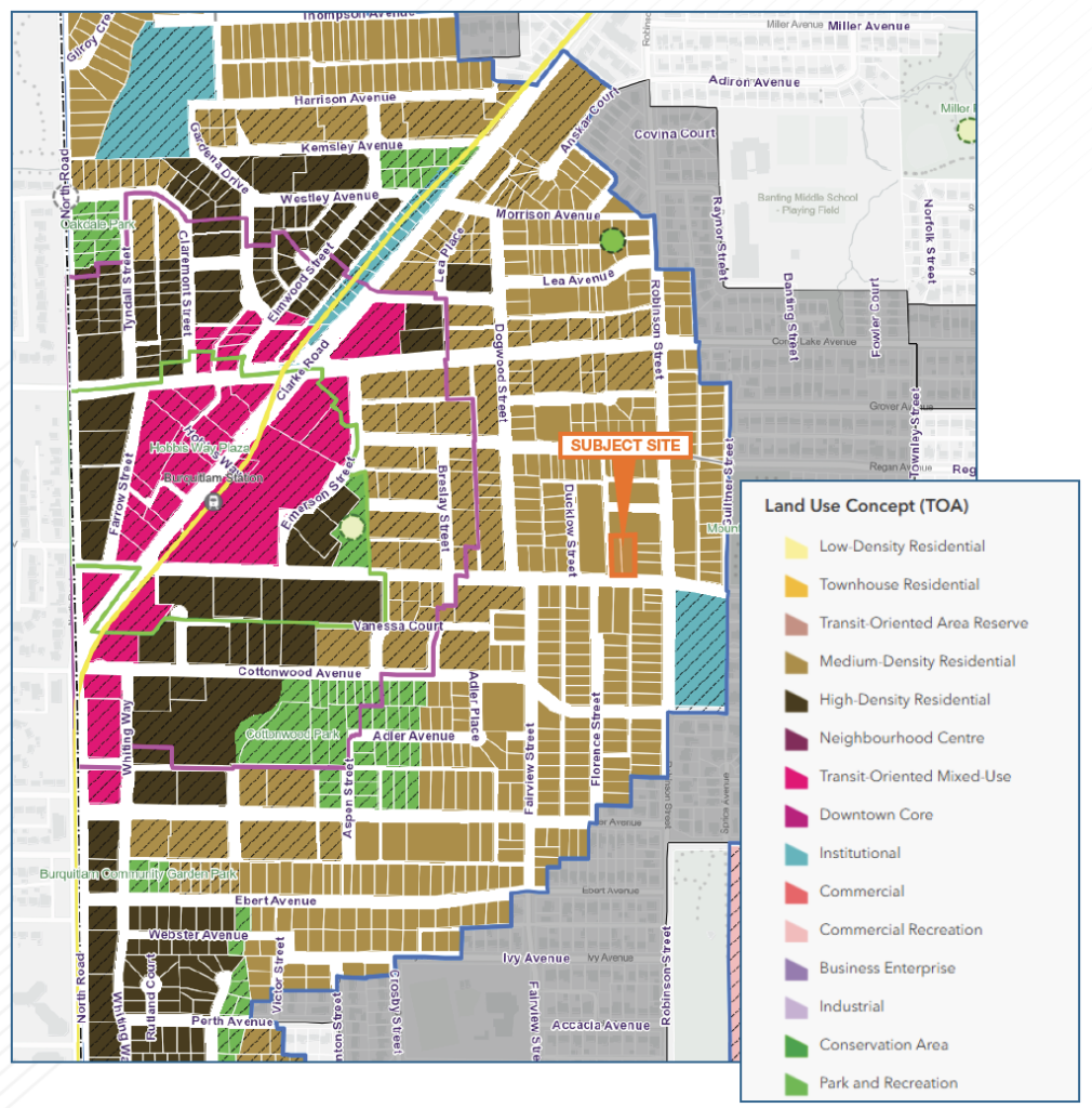 - Feature 2: Bill 47 designated TOA site within 800M of Burquitlam SkyTrain (3.0 FSR / 8-Storeys)