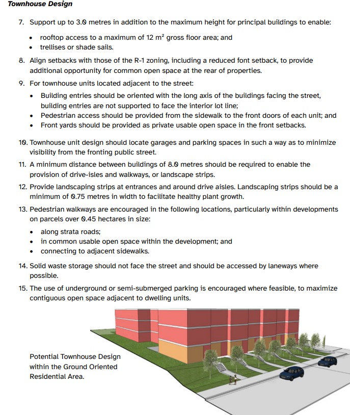 - Heights: 3 storeys; rooftop stair or trellis features may be supported with a +3.0 m allowance
